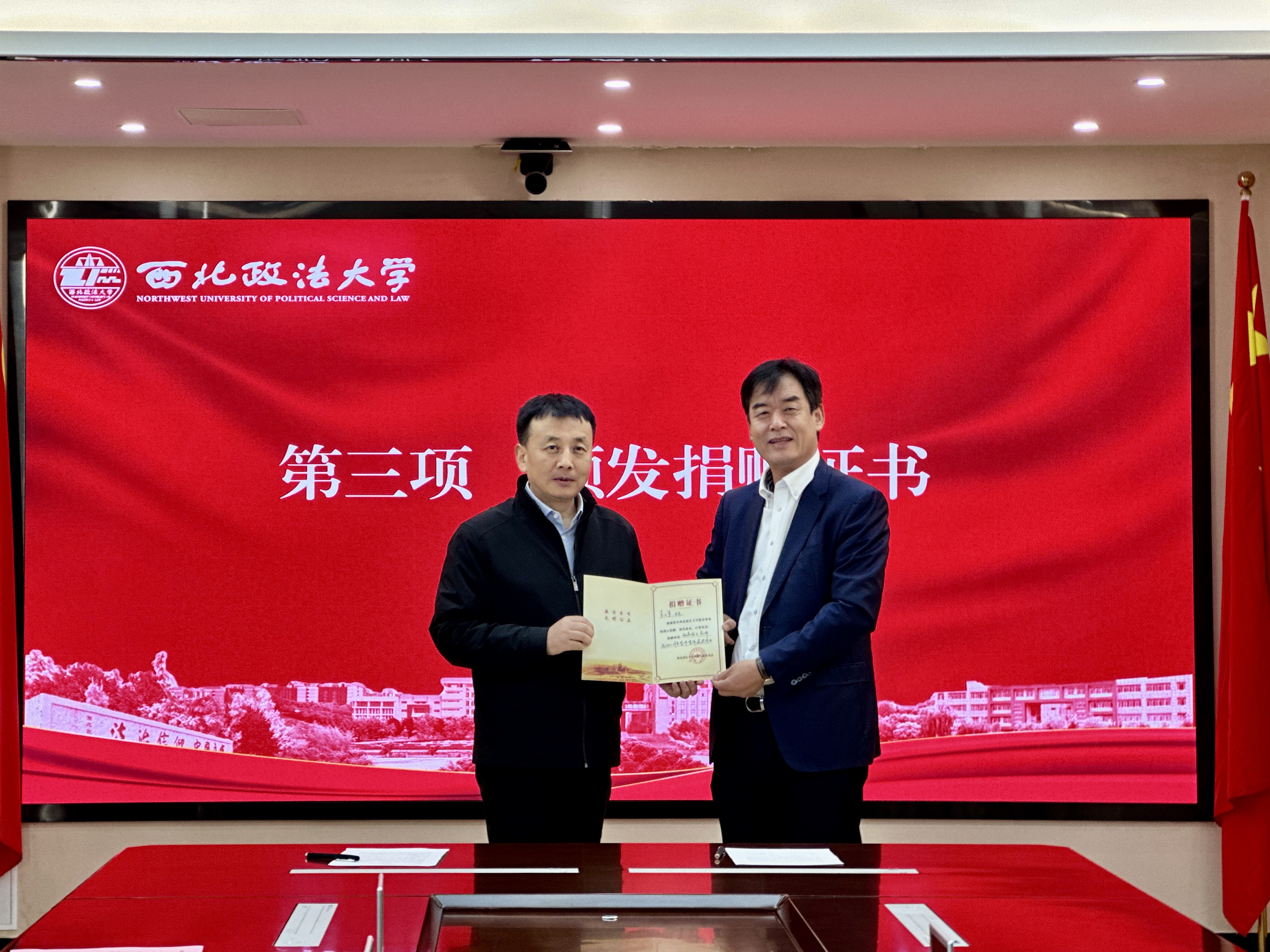 王小军与学校相关职能部门负责人共同签署捐赠协议。此次签约标志着继长安校区教师流动工作室投入使用以来,学校再次启动该项目的建设工作,持续为教师搭建更高质量的教学科研交流平台,提供更贴合需求的教师发展服务,为推动教师专业成长、夯实教书育人能力注入新的动力。