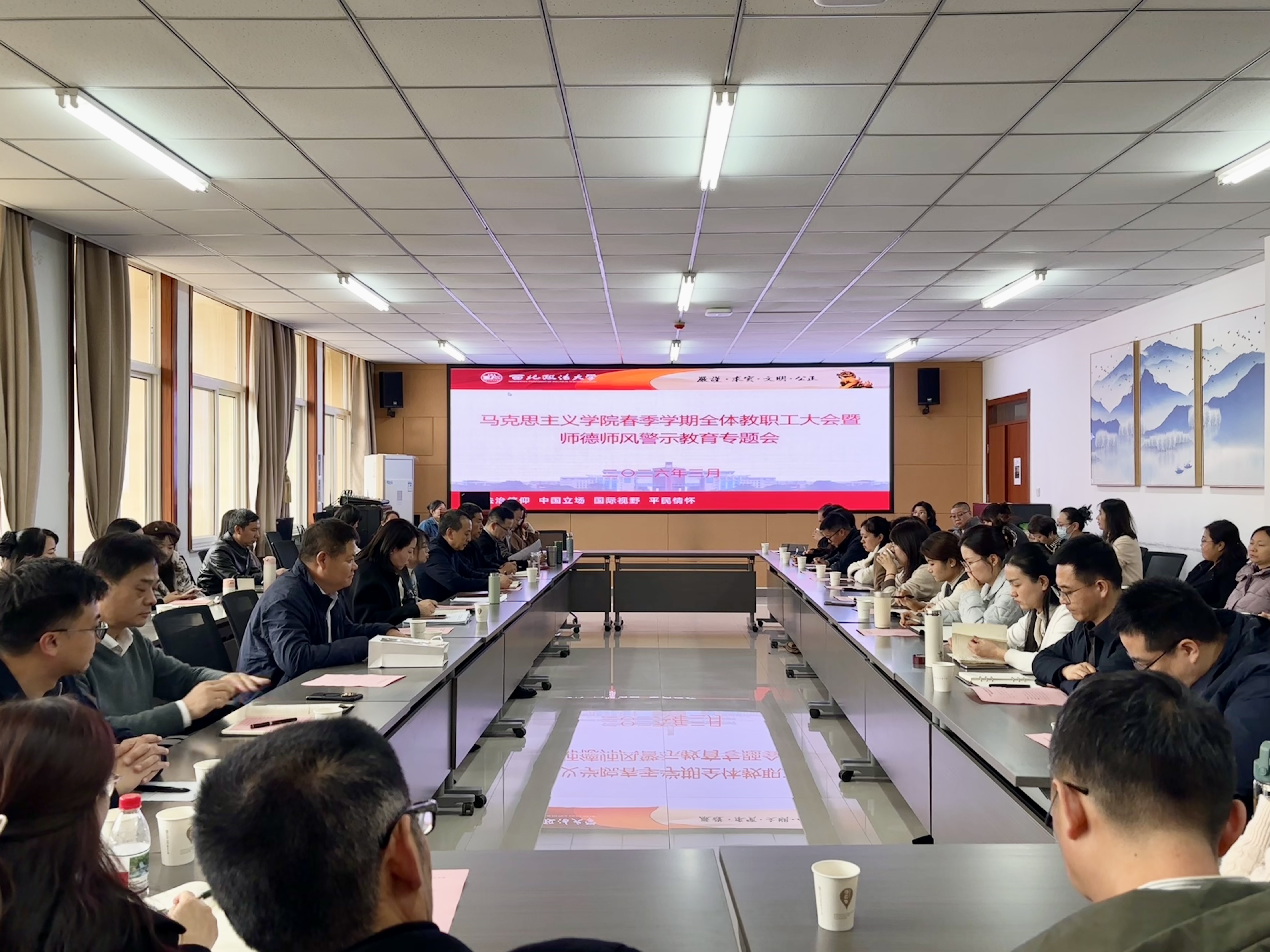 3月6日下午,马克思主义学院召开2026年春季学期全体教职工大会暨师德师风警示教育专题会。校党委委员、副校长、马克思主义学院院长马朝琦出席会议并讲话。学院领导班子成员及全体教职工参会。会议由学院常务副院长郭淼主持。